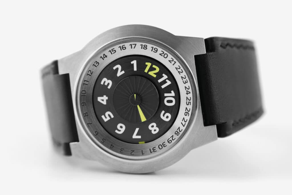 Incontestablement, le chiffre 12 est le plus marquant de presque toute montre. Mise à part que le douze est le chiffre préféré de Roman Winiger, il a pris ce fait pour développer une montre qui le met au centre de l’affichage.