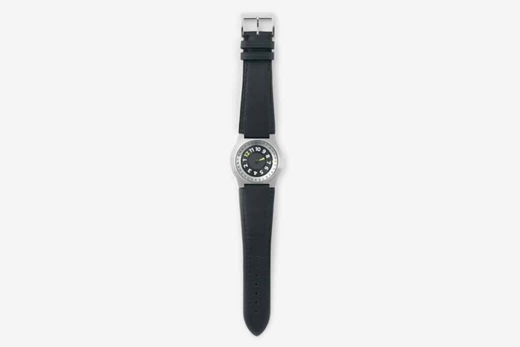 Le chiffre 12 remplace en quelque sorte l’aiguille des heures, c’est lui qui fait office de repère majeur, d’où le nom WH 12. En même temps, l’heure actuelle défile sur le bord supérieur de la montre. Ceci explique pourquoi les chiffres sont dans un ordre inhabituel, à contre-sens sur le cadran. L’affichage de la date est également inhabituel. Le mouvement, mécanique à remontage automatique, est un exellent standard industriel (calibre 2824-2). Le boîtier est fabriqué en acier inoxydable. L’ensemble représente le concept de départ avec simplicité.
